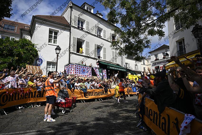 CYCLISME TOUR DE FRANCE 2025 2025 MANTES-LA-VILLE/PARIS CHAMPS-ELYSEES PARIS FRANCE 27/07/2025 MANTEY STEPHANE ambiance rue Lepic distribution de produits publicitaires