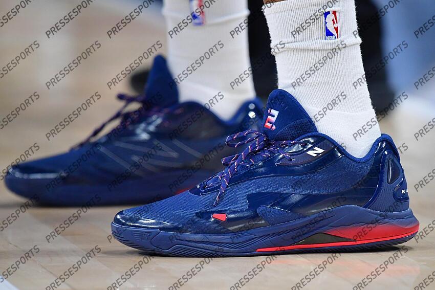 Feb 2, 2026; Inglewood, California, USA; The shoes of Los Angeles Clippers forward Kawhi Leonard (2) pictured at Intuit Dome. Mandatory Credit: Gary A. Vasquez-Imagn Images NBA: Philadelphia 76ers at Los Angeles Clippers