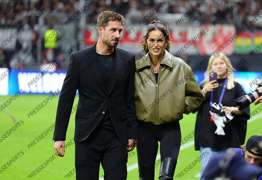 Verabschiedung v.l. Torwart Kevin Trapp (FC Paris) mit Freundin und Model Izabel Goulart (Brasilien) Frankfurt, 18.09.2025, Fussball, UEFA Champions League, Ligaphase - Spieltag 1, Eintracht Frankfurt - Galatasaray Istanbul 5:1 EINTRACHT FRANCFORT-GALATASARAY (5-1)