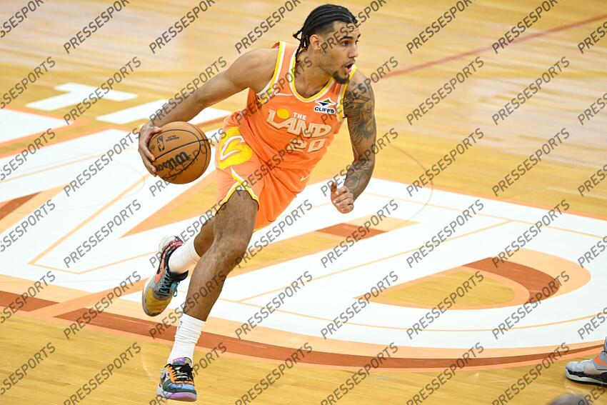 Jan 26, 2026; Cleveland, Ohio, USA; Cleveland Cavaliers guard Jaylon Tyson (20) brings the ball up court in the fourth quarter against the Orlando Magic at Rocket Arena. Mandatory Credit: David Richard-Imagn Images NBA: Orlando Magic at Cleveland Cavaliers