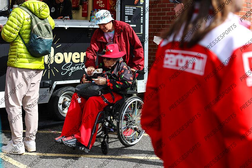 13 September 2025, Bournemouth - Premier League Football - AFC Bournemouth v Brighton & Hove Albion - An AFC Bournemouth fan in a jacket patterned with cherries is handed a hotdog - Photo: Charlotte Wilson / Offside. BOURNEMOUTH-BRIGHTON (2-1)