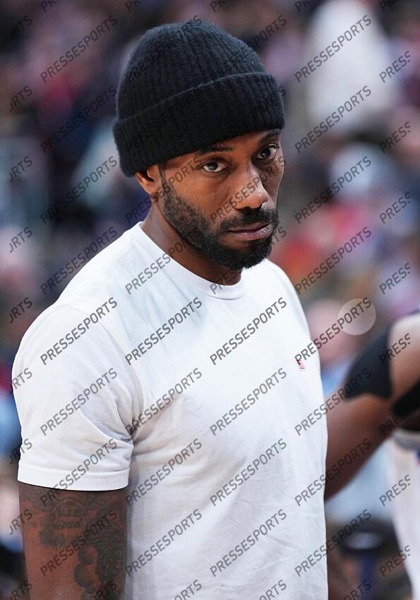 Jan 16, 2026; Toronto, Ontario, CAN; LA Clippers forward Kawhi Leonard (2) watches from the bench during a time out against the Toronto Raptors during the second quarter at Scotiabank Arena. Mandatory Credit: Nick Turchiaro-Imagn Images NBA: Los Angeles Clippers at Toronto Raptors