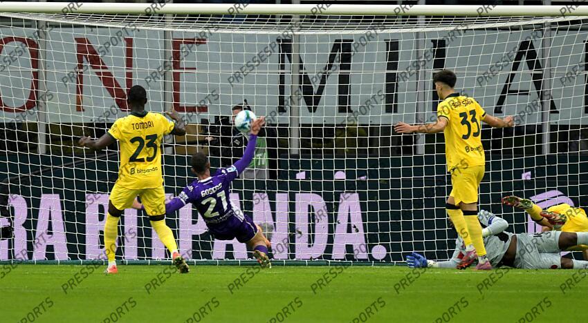 Foto IPP/Paolo Bona Milano 19/10/2025 Campionato Serie A di Calcio stagione 2025/2026 partita Milan-Fiorentina Nella foto Robin Gosens segna il gol del 0-1 Italy Photo Press Worldwide Copyright AC MILAN-FIORENTINA (2-1)