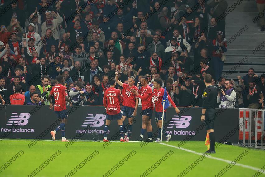 mbappe lottin (ethan) igamane (hamza) santos (tiago) FOOT L1 2025 LILLE-PSG (1-1) STADE PIERRE MAUROY VILLENEUVE D'ASCQ FRANCE 05/10/2025 SEBASTIEN BOUE joie du 1-1, 85' L'(07/10/2025)