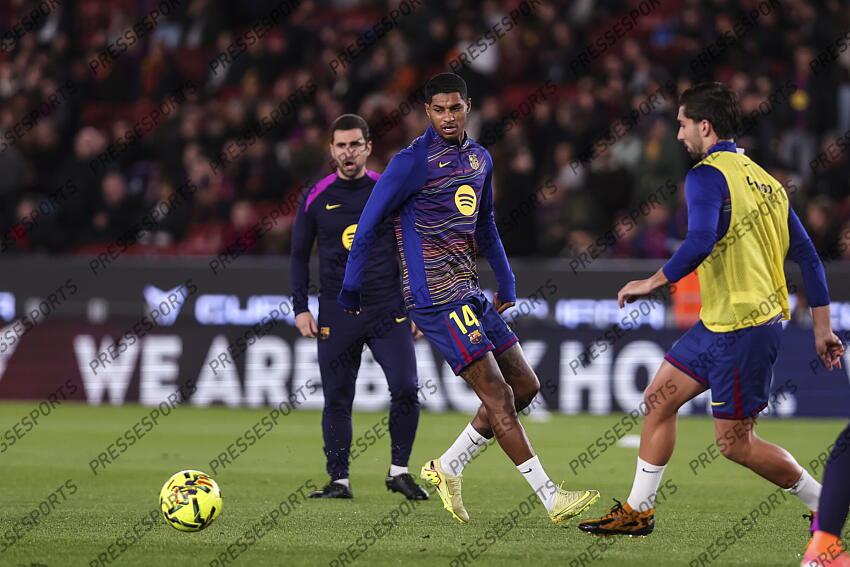 Marcus Rashford of FC Barcelona warms up during the Spanish league, La Liga EA Sports, football match played between FC Barcelona and CA Osasuna at Spotify Camp Nou stadium on December 13, 2025 in Barcelona, Spain. FC BARCELONE-OSASUNA (2-0)