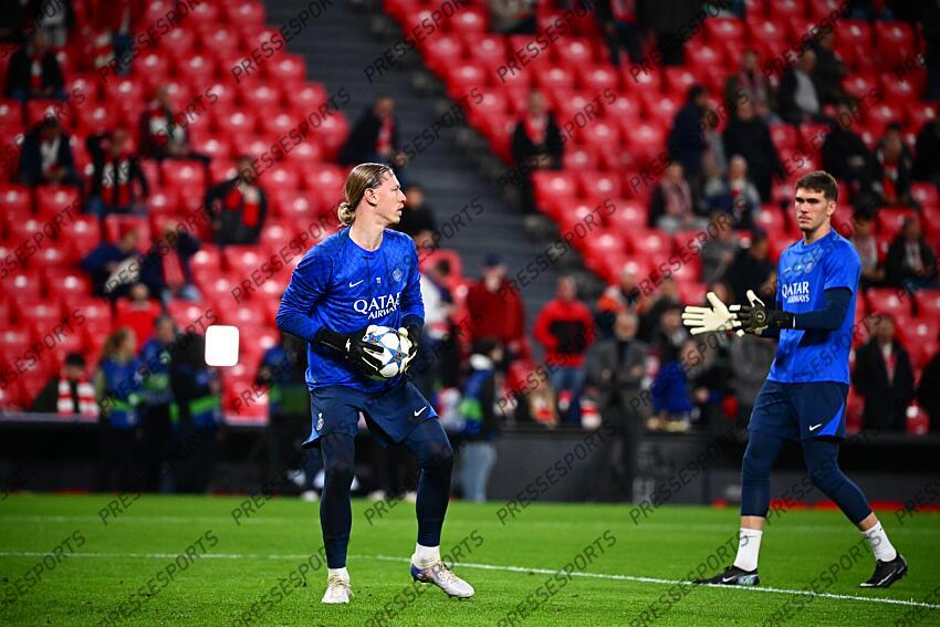 safonov (matvey) FOOT LIGUE DES CHAMPIONS 2025 ATHLETIC BILBAO-PSG (0-0) STADE SAN MAMES BILBAO ESPAGNE 10/12/2025 LAHALLE PIERRE marin (renato)