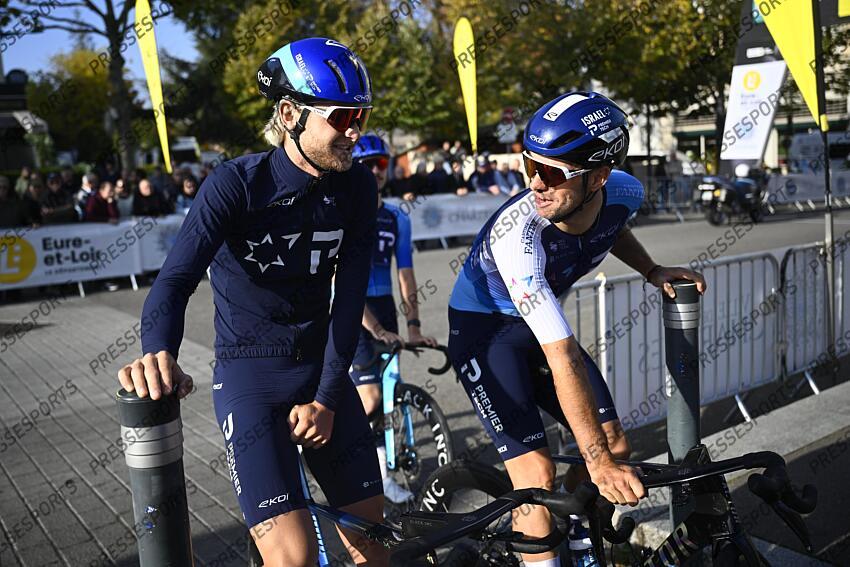 TOURS, FRANCE - OCTOBER 12 : Sheehan Riley of Israel - Premier Tech and Van Asbroeck Tom of Israel - Premier Tech before the start of the race during the 119th edition of Paris Tours an UCI ProSeries 1.Pro one day cycling road race for Men Elite of 211.6 km with start in Chartres and finish in Tours on October 12, 2025 in Tours, France, 12/10/2025 ( Motordriver Guy De Vuyst - Photo by Peter De Voecht / Photonews PARIS/TOURS