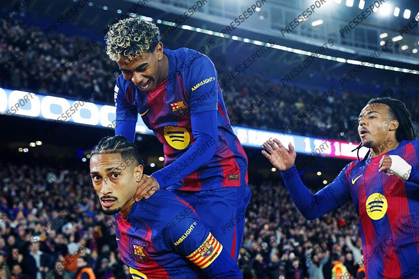 Raphinha, Lamine Yamal (Barcelona), DECEMBER 2, 2025 - Football / Soccer : Spanish "La Liga EA Sports" match between FC Barcelona 3-1 Atletico de Madrid at Spotify Camp Nou in Barcelona, Spain. (Photo by D.Nakashima/AFLO) FC BARCELONE-ATHLETICO DE MADRID (3-1)