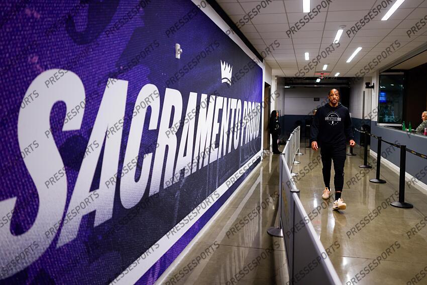 Dec 11, 2025; Sacramento, California, USA; Sacramento Kings guard Demar Derozan (10) walks to the court before the game against the Denver Nuggets at Golden 1 Center. Mandatory Credit: Sergio Estrada-Imagn Images NBA: Denver Nuggets at Sacramento Kings
