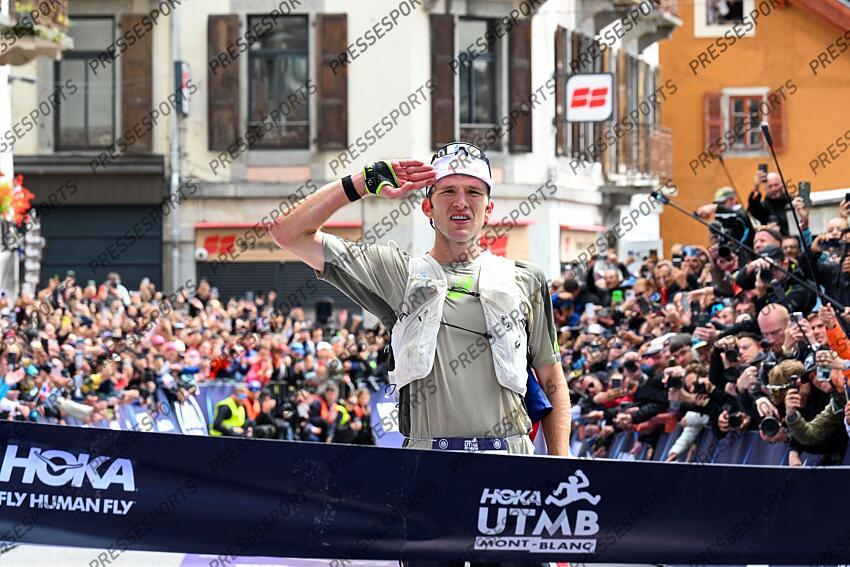 Chamonix, France - aout 28 : Tom Evans of Team Great Britain durant l UTMB pendant le HOKA UTMB MONT BLANC du 25 au 31 aout 2025, Chamonix, France (Photo by Marta Baccardit /Agence Zoom) HOKA UTMB MONT BLANC