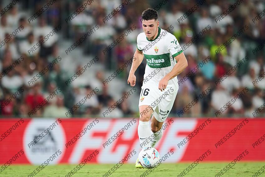 Martim Neto of Elche CF runs with the ball during the Spanish League, LaLiga EA Sports, football match played between Elche CF and Levante UD at Estadio Manuel Martinez Valero on August 29, 2025 in Elche, Alicante, Spain. ELCHE-LEVANTE (2-0)