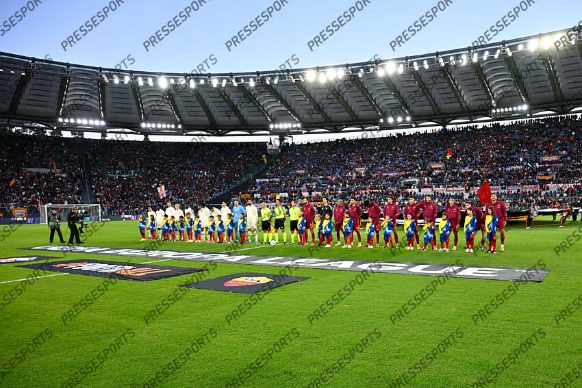 Foto IPP/Cavaliere Emiliano. Roma 02/10/2025. Calcio Europa League 2025/2026. AS Roma - Lille. Nella foto: le due squadre ad inizio partita. Italy Photo Press - World Copyright AS ROME-LILLE (0-1)
