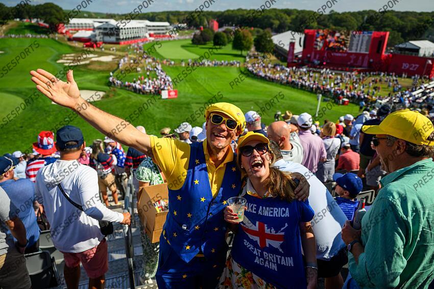 250928 Fans of Team Europe on day 3 of the Ryder Cup on September 28, 2025 in New York. Photo: Jesper Zerman / BILDBYRÅN / kod JZ / JZ0619 golf ryder cup day 3 bbeng publik FINAL DAY SIMPLES