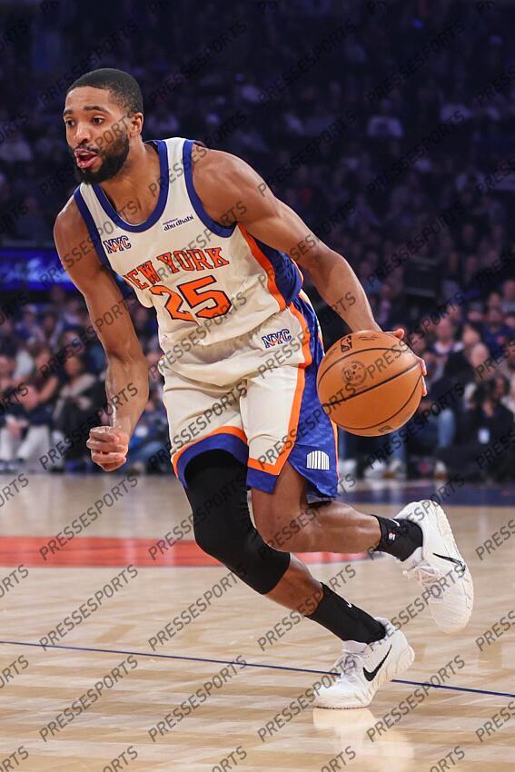 Dec 7, 2025; New York, New York, USA; New York Knicks guard Mikal Bridges (25) drives to the basket in the first quarter against the Orlando Magic at Madison Square Garden. Mandatory Credit: Wendell Cruz-Imagn Images NBA: Orlando Magic at New York Knicks