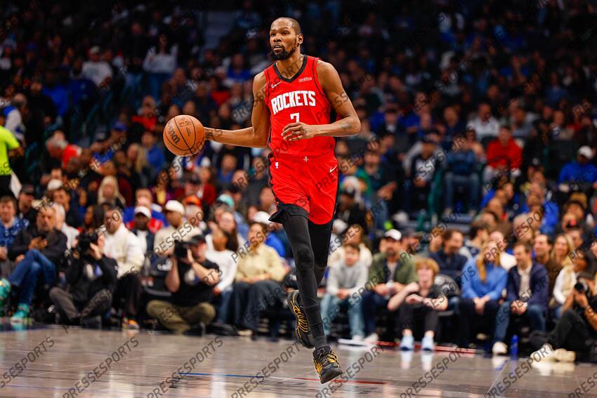 Dec 6, 2025; Dallas, Texas, USA; Houston Rockets forward Kevin Durant (7) brings the ball up the court during the first quarter against the Dallas Mavericks at American Airlines Center. Mandatory Credit: Andrew Dieb-Imagn Images NBA: Houston Rockets at Dallas Mavericks