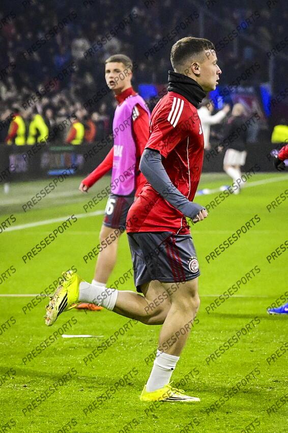 AMSTERDAM - Stavros Pnevmonidis of Olympiakos Piraeus before the UEFA Champions League match between AFC Ajax and Olympiakos Piraeus at the Johan Cruijff ArenA on January 28, 2026, in Amsterdam, Netherlands. OLAF KRAAK / ANP AJAX AMSTERDAM-OLYMPIAKOS (1-2)