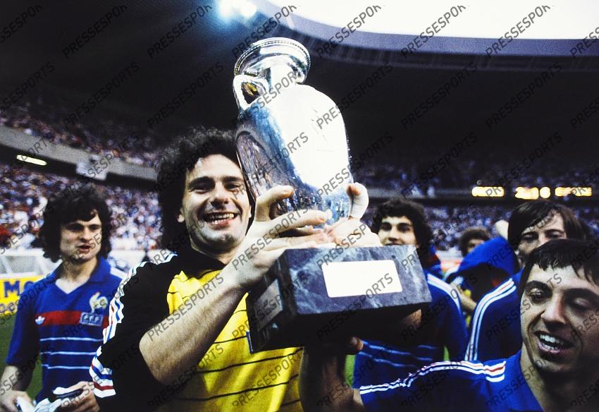 FUSSBALL Europameisterschaft 1984 Finale Frankreich - Spanien 27.06.1984 Joel BATS (Frankreich) mit dem EM-Pokal. FOTO: EXPA/ WEREK Pressebildagentur ATTENTION - for FRA only
