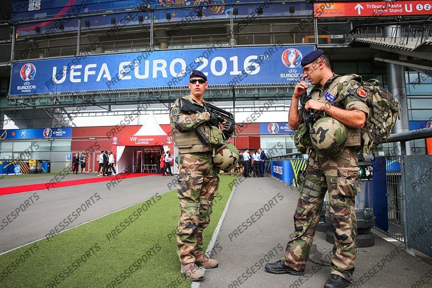Security in front of the Stade de France during the Euro group stage match between France and Romania at the Stade de France on june 10, 2016 in Saint-Denis, France