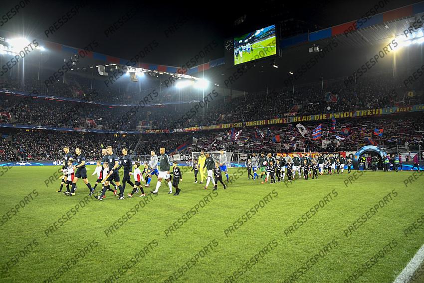 13.02.2018; Basel; Fussball Champions League - FC Basel - Manchester City; Die Mannschaften kommen ins Stadion (Urs Lindt/freshfocus)
