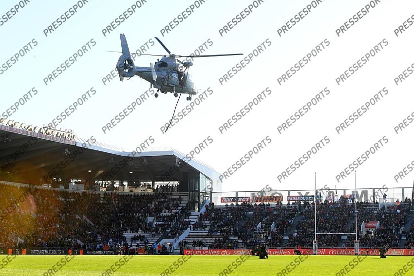 la marine nationale assure le spectacle avec un helicoptere avant le match