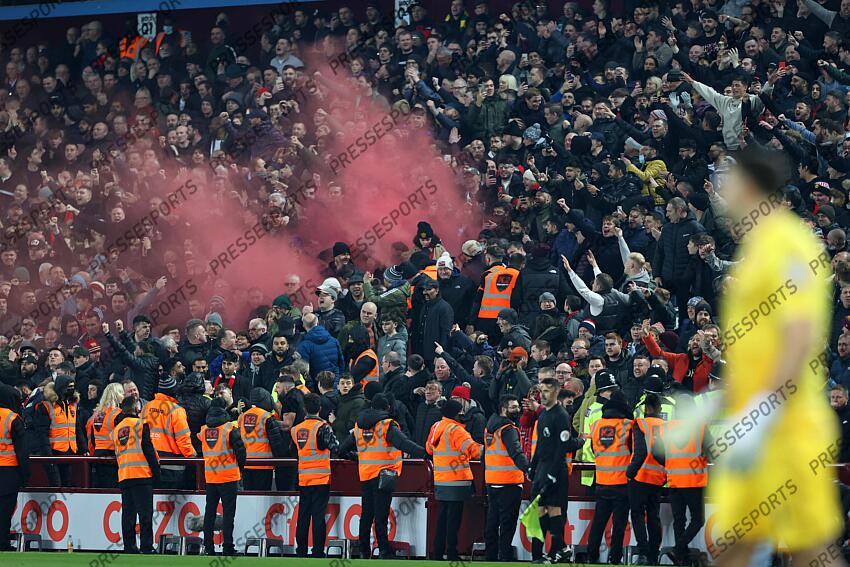 15 January 2022, Aston - Premier League Football - Aston Villa v Manchester United - United fans celebrate the opening goal by letting off red flares. - Photo: Charlotte Wilson / Offside. ASTON VILLA-MANCHESTER UNITED (2-2)