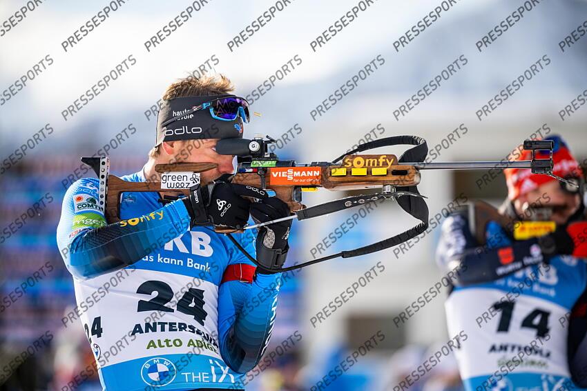 ANTHOLZ ANTERSELVA, ITALY - JANUARY 20: Antonin Guigonnat of Team France competes during the BMW IBU World Cup Biathlon Men's 20 km individual Competition on January 20, 2022 in Antholz Anterselva, Italy. (Photo by Kevin Voigt/Agence Zoom) INDIVIDUEL 20 KM HOMMES