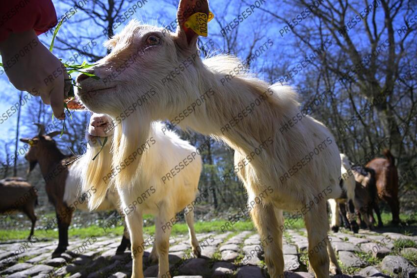 RECONNAISSANCE PARIS/ROUBAIX Des chevres broutent l'herbe entre les pavés de la trouée d'Arenberg