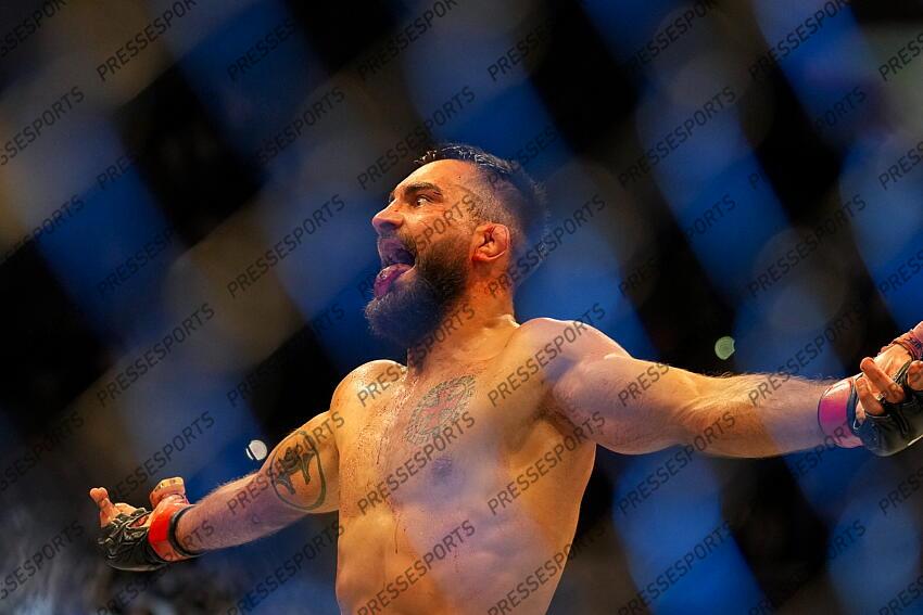 Benoit Saint Denis (FRA) gants rouge vs Thiago Moisés (BRA) gants bleu, catégorie Lightweight (-70 kg) UFC Fight Night Gane vs Spivac