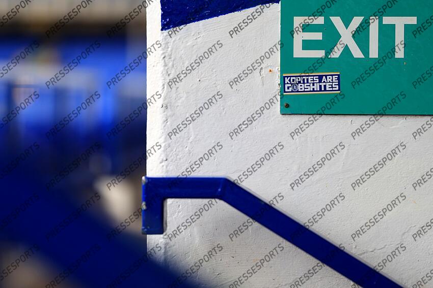 3rd February 2024 - Premier League - Everton v Tottenham Hotspur - A sticker reading 'Kopites Are Gobshites' - Photo: Simon Stacpoole / Offside. EVERTON-TOTTENHAM (2-2)