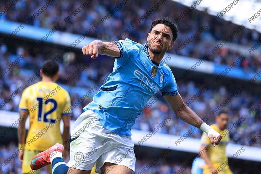 12th April 2025 - Premier League - Manchester City v Crystal Palace - Omar Marmoush of Manchester City celebrates after scoring their 2nd goal - Photo: Simon Stacpoole / Offside. MANCHESTER CITY-CRYSTAL PALACE (5-2)