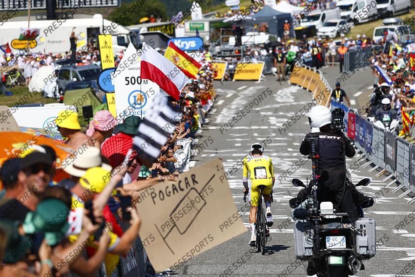pogacar (Tadej) - (SLV) - uae team emirates xrg - pancarte anti pogacar seringue dopage CYCLISME TOUR DE FRANCE 2025 2025 LOUDENVIELLE/PEYRAGUDES FRANCE 18/07/2025 GARNIER ETIENNE pancarte