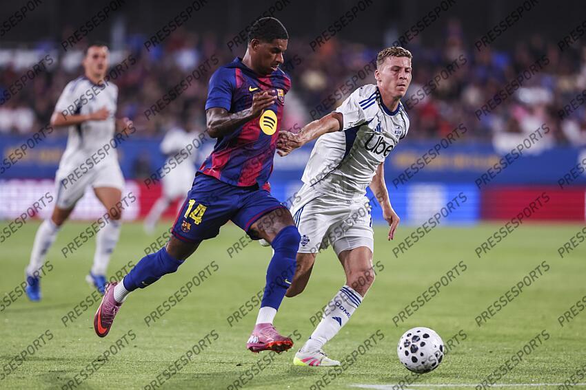Marcus Rashford of FC Barcelona in action during the Joan Gamper Trophy, football match played between FC Barcelona and Como 1907 at Johan Cruyff Stadium on August 10, 2025 in Sant Joan Despi, Spain. FINALE FC BARCELONE-COME (5-0)