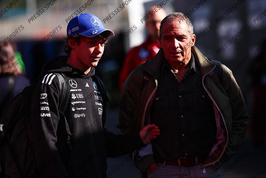 #12 Andrea Kimi Antonelli (ITA, Mercedes-AMG Petronas F1 Team) with his father Marco Antonelli, F1 Grand Prix of the Netherlands at Circuit Zandvoort on August 29, 2025 in Zandvoort, Netherlands. (Photo by HOCH ZWEI) GRAND PRIX DES PAYS-BAS