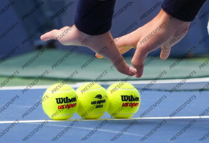 Aug 29, 2025; Flushing, NY, USA; Ball persons ready the balls prior to the Carlos Alcaraz (ESP) vs. Luciano Darderi (ITA) match on day six of the 2025 U.S. Open tennis tournament at the USTA Billie Jean King National Tennis Center. Mandatory Credit: Robert Deutsch-Imagn Images US OPEN