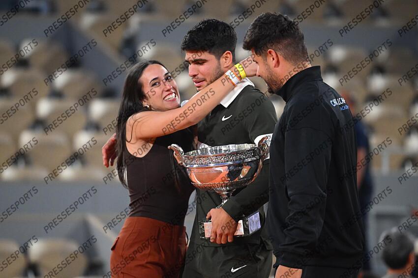 lucia alcaraz (carlos) - (esp) - alcaraz (alvaro) TENNIS ROLAND GARROS 2025 GRAND CHELEM 2025 SINNER/ALCARAZ COURT PHILIPPE CHATRIER PARIS FRANCE 08/06/2025 REAU ALEXIS avec son frere et sa belle soeur (la compagne de son frere)