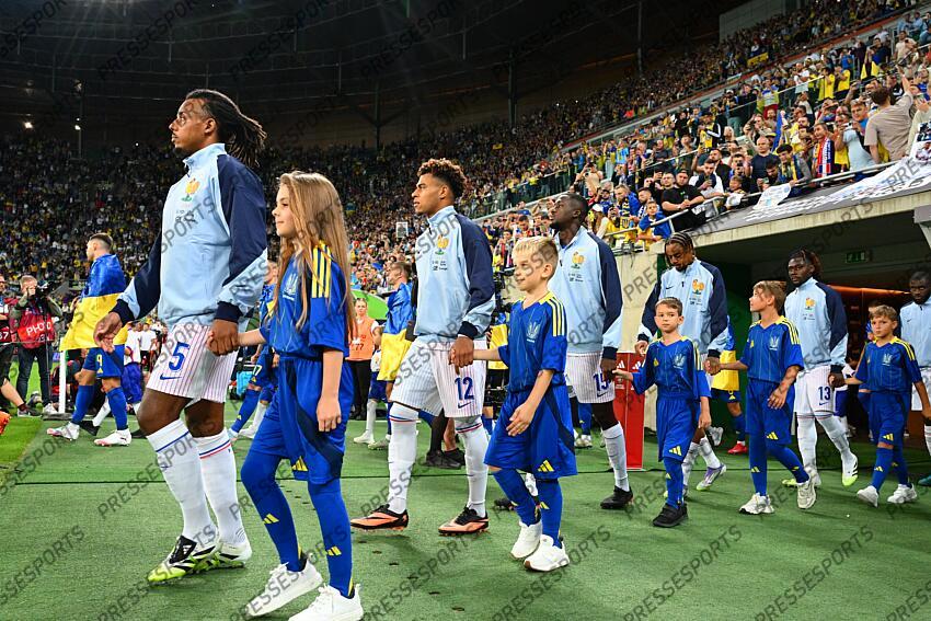 kounde (jules) doue (desire) konate (ibrahima) barcola (bradley) FOOT ELIMINATOIRES COUPE DU MONDE 2026 2025 UKRAINE-FRANCE TARCZYNSKI ARENA WROCLAW POLOGNE 05/09/2025 FAUGERE FRANCK avant ukraine/france