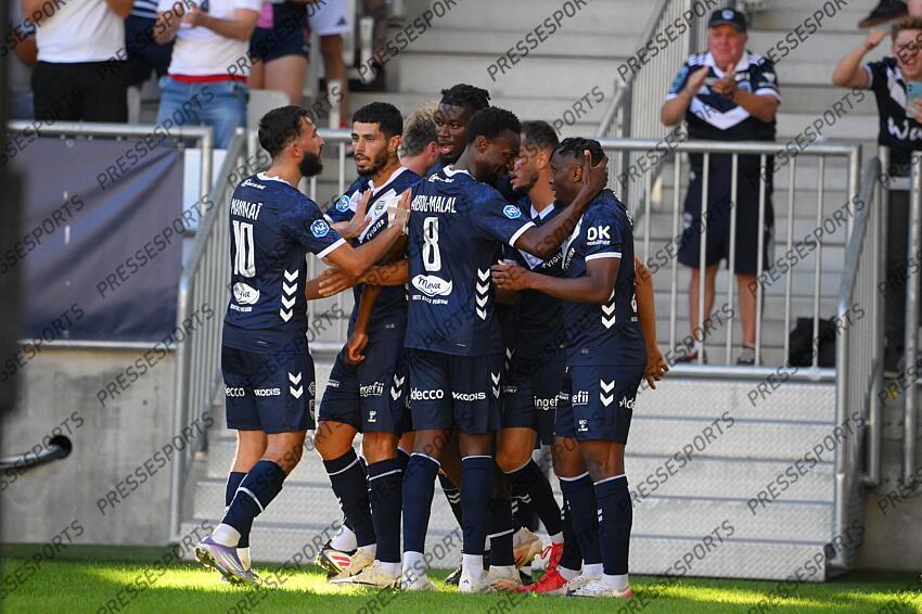mannai (faissal) shamal (steve) etonde (luderic) ba (abou) openda (royce) FOOT NATIONAL 2 2025 BORDEAUX-SAUMUR (2-1) STADE ATLANTIQUE BORDEAUX METROPOLE BORDEAUX FRANCE 06/09/2025 PAPON BERNARD joie du 1-0