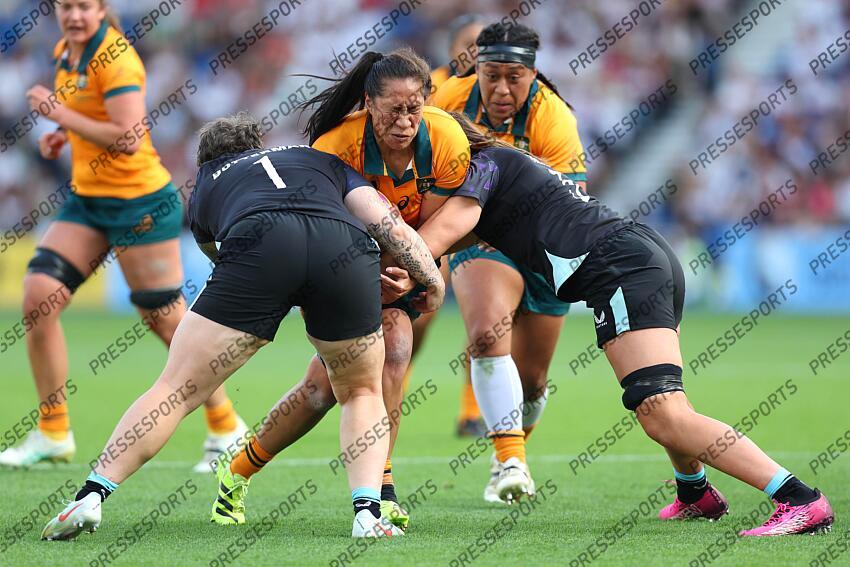6 September 2025, Brighton - Women’s Rugby World Cup, Pool A - England v Australia Women - Siokapesi Palu of Australia is tackled - Photo: Charlotte Wilson / Offside. ANGLETERRE FEM-AUSTRALIE FEM (47-7)