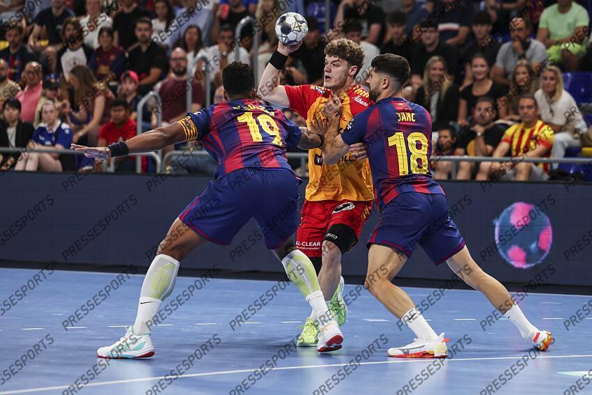 Oli Mittun of GOG in action during the EHF Champions League 2025/26 group phase, handball match played between FC Barcelona and GOG at Palau Blaugrana on September 11, 2025 in Barcelona, Spain. FC BARCELONE-GOG (37-32)