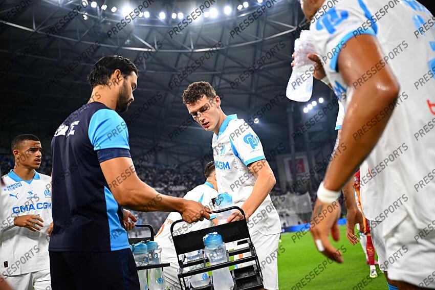 pavard (benjamin) FOOT L1 2025 MARSEILLE-LORIENT (4-0) ORANGE VELODROME MARSEILLE FRANCE 12/09/2025 LAHALLE PIERRE pause fraicheur