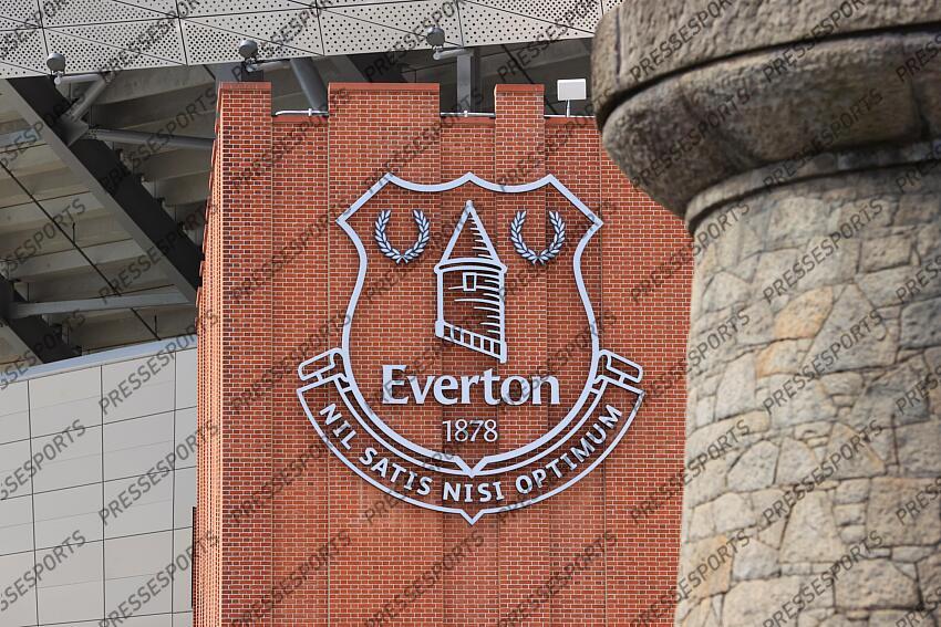 13th September 2025 - Premier League - Everton v Aston Villa - A general view (GV) of the Everton club crest on the side of the Hill Dickinson Stadium - Photo: Simon Stacpoole / Offside. EVERTON-ASTON VILLA (0-0)