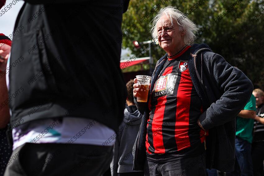 13 September 2025, Bournemouth - Premier League Football - AFC Bournemouth v Brighton & Hove Albion - An AFC Bournemouth fan with a pint of beer - Photo: Charlotte Wilson / Offside. BOURNEMOUTH-BRIGHTON (2-1)