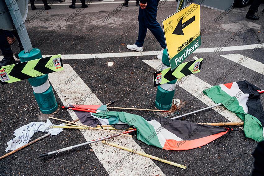 Picture by Zac Williams/SWpix.com - 09/09/2025 - Cycling - 2025 Vuelta Ciclista a Espana Stage 16, Poio to Castro de Herville, Spain - Pro-Palestinian Protestors gather at 3km to go in the stage, resulting in the race finish being held at 8km to go. Étape tronquée de huit kilomètres la Vuelta, secouée par les manifestations pro-palestiniennes POIO/MOS - CASTRO DE HERVILLE