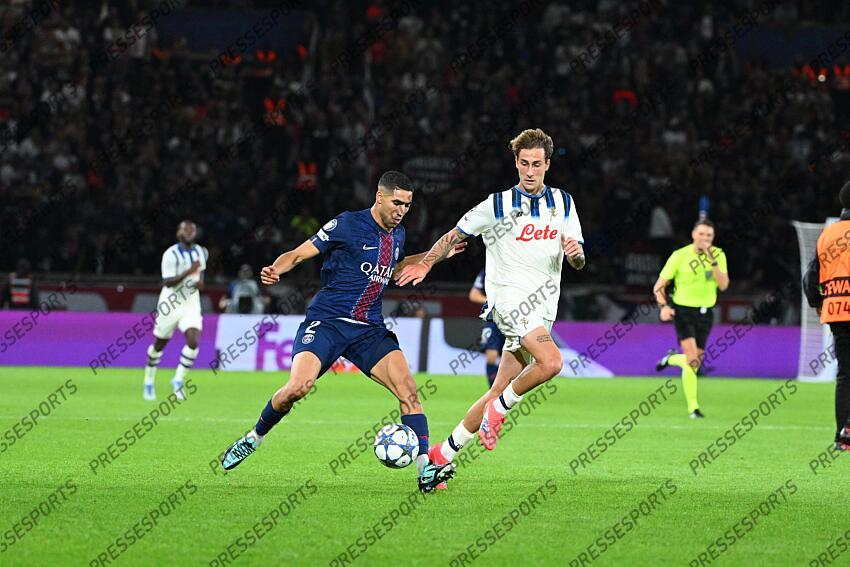 hakimi (achraf) bernasconi (lorenzo) FOOT LIGUE DES CHAMPIONS 2025 PSG-ATALANTA BERGAME (4-0) PARC DES PRINCES PARIS FRANCE 17/09/2025 FAUGERE FRANCK