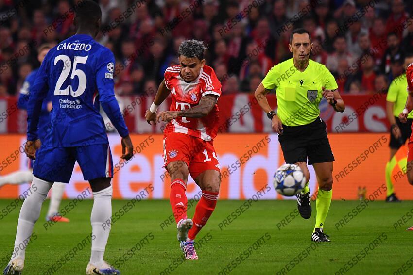 Foto IPP/Luciano Adriani Monaco di Baviera 17/09/2025 Calcio Champions League 2025/2026 Bayern Monaco-Chelsea Nella foto: Luis Diaz al tiro Italy Photo Press - World Copyright BAYERN DE MUNICH-CHELSEA (3-1)