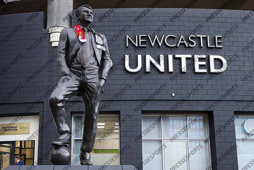 Statue of Sir Bobby Robson outside the stadium before the UEFA Champions League 2025/26 League Phase MD1 match between Newcastle United FC and FC Barcelona at St James' Park on September 18, 2025 in Newcastle upon Tyne, England. NEWCASTLE-FC BARCELONE (1-2)