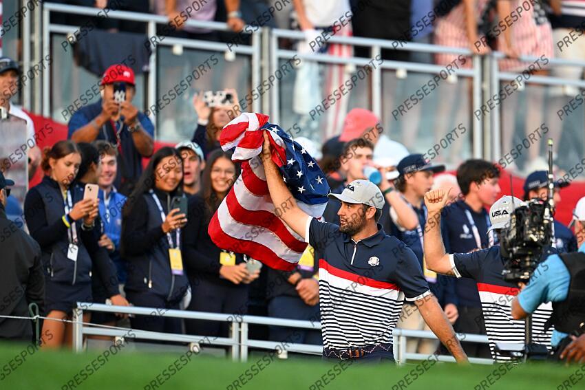 Sep 26, 2025; Bethpage, New York, USA; Team USA golfer Scottie Scheffler walks out to the first tee on the first day of competition for the Ryder Cup at Bethpage Black. Mandatory Credit: Dennis Schneidler-Imagn Images PGA: Ryder Cup - First Day