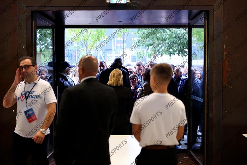 Lyon (Rhone), le 26/09/2025 Salon H7 Première réunion publique de Jean-Michel Aulas comme candidat (sans étiquette) aux municipales (2026) de la ville de Lyon. Des nombreux sympathisants ont du restés dehors premier meeting de son mouvement Coeur Lyonnais SOCIETE POLITIQUE 2025 CANDIDATURE AULAS MUNICIPALES LYON 2026 LYON FRANCE 27/09/2025 ALEX/PRESSE SPORTS