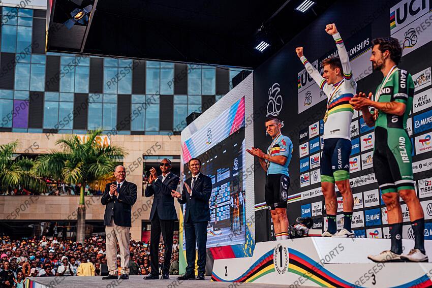 Picture by Zac Williams/SWpix.com - 28/09/2025 - Cycling - 2025 UCI Road World Championships - Kigali Convention Centre, Kigali, Rwanda - Men Elite Road Race - Prince of Monaco Albert II, President of Rwanda Paul Kagame, UCI President David Lappartient ROUTE HOMMES