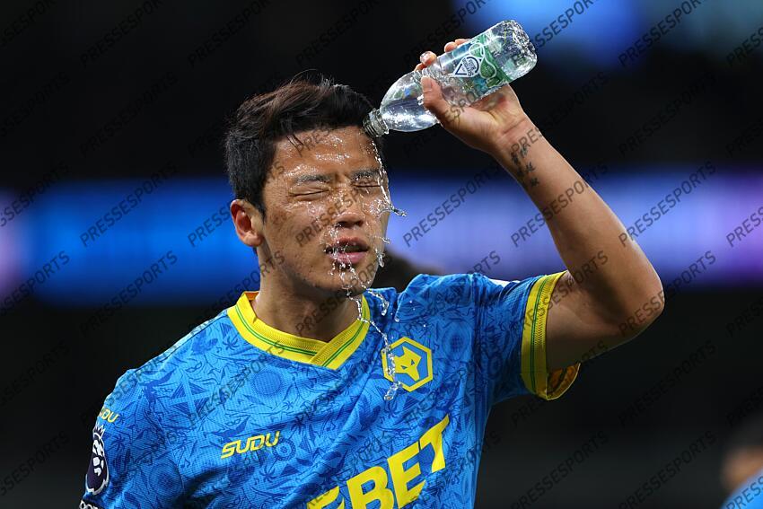 27 September 2025 London - Premier League Football - Tottenham Hotspur v Wolverhampton Wanderers - Hwang Hee-Chan of Wolverhampton Wanderers splashes his face with water - (Photo by Mark Leech). TOTTENHAM-WOLVERHAMPTON (1-1)